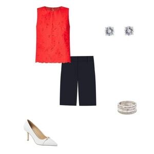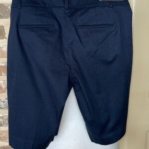 NWOT Ann Taylor Tailored Atlantic Navy Knee Length Shorts Size 2. Devin Slim Fit Boardwalk Shorts in a true Navy color. Front zip with double hook-and-bar closure. Belt loops. Front off-seam pockets. Back welt pockets. Side slits. Tailored & fitted. Mid rise: sits right below natural waist. Hits above the knee. 97% Cotton/3% Spandex. Excellent condition. Approximate measurements in photos.