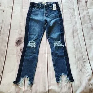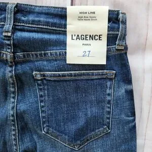 New With Tags Women's L'Agence "High Line Skinny" High Rise Distressed Destroyed Jeans Blue, Size 27.
