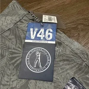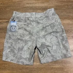 Vintage 1946 Tropical Gray Leaf Print Performance Golf Shorts