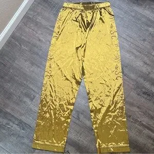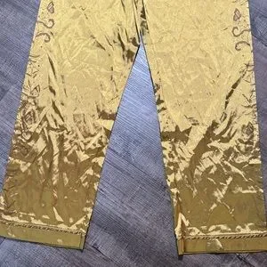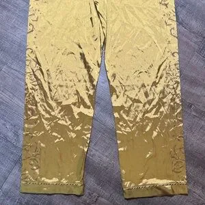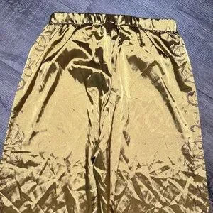 Stylish gold satin pants with elegant embroidery on the sides. Ideal for a chic look. Great condition! Size L