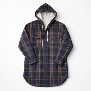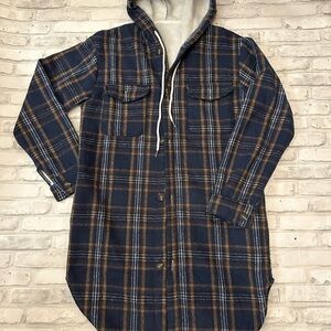 Helix Shacket Navy and Tan Plaid Hooded Jacket