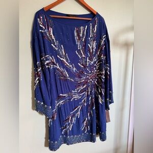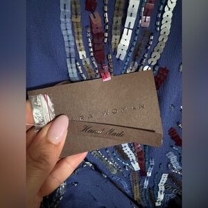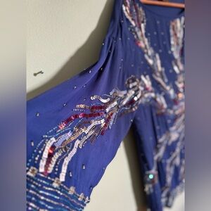 Stunning blue dress featuring intricate sequin embellishments. Perfect for special occasions. Some rhinestones came off but there are spare ones