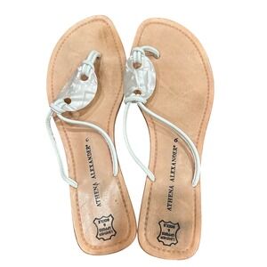 Athena Alexander Womens White Leather Thong Sandals Resin Ring Detail Size 6