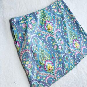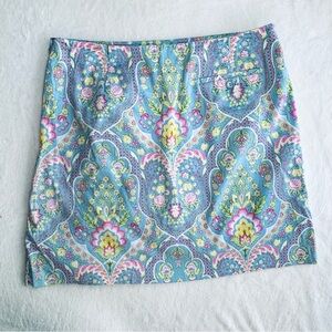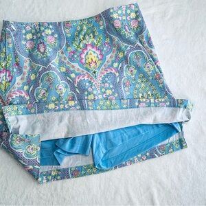 Preppy spring golf skort paisley floral vintage inspired maximalism with colorful floral medallion print. Stretchy short lining, rear button pocket and side pockets.