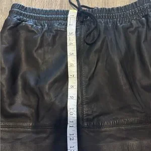 Elegant black leather skirt by MNG. Features a comfortable elastic waistband.