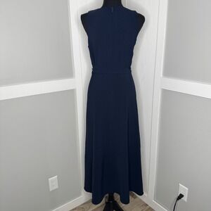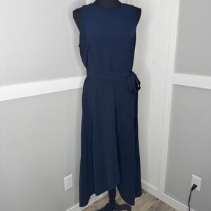 Anne Klein Midi Dress Womens 4 Navy Blue Sleeveless Belted Asymmetrical