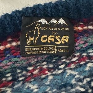 Vintage Casa 100% pure alpaca wool multicolor blue fair isle crew neck cardigan hand knit in Bolivia
