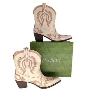 Hochfart Cream Western Ankle Boots Embroidered Leather Size 10 New
