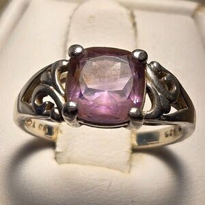 Filigree purple stone Vintage Sterling Silver Ring Sz 7