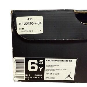 The Air Jordan 6 Retro BG Black Infrared in size 6Y is a stylish and high-quality pair of boys' shoes. Featuring the iconic Air Jordan 6 model with a retro theme, these sneakers are designed for performance and activity. The black colorway adds a sleek and modern touch to the overall look, making them a versatile and trendy option for young boys looking to make a statement with their footwear. Perfect for both athletic and casual wear, these shoes are sure to be a hit with any young sneakerhead.