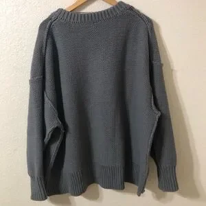 Free People Alli V Neck Sweater in Titan Gray - Size Medium