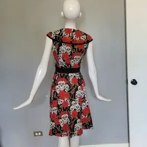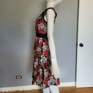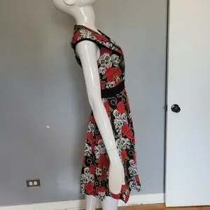 Banned Apparel Skull And Roses Dress, VGUC, Approximate Size S. No flaws to note and in excellent shape. Size tag has been removed, it is a size S based on the flat lay measurements below.
