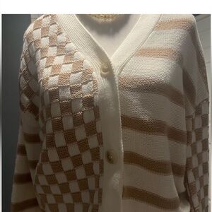 New Sincerely Jules Cream and Brown Checkered Cardigan. Size M