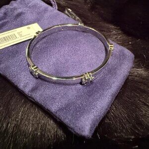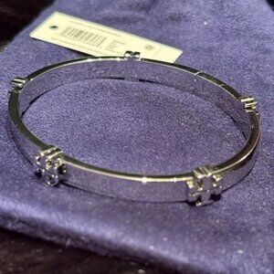 Brand New Tory Burch silver Classic Logo Hinge Bangle