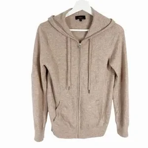 Quince Mongolian Cashmere Full-Zip Hoodie Sweater Small Women's Oatmeal