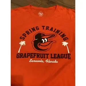 Keywords: Baltimore Orioles, Spring Training, Grapefruit League, Baseball T-Shirt, Mens T-Shirt, 47 Brand, Sarasota Florida, MLB, Team Apparel, Sports Fan, Casual Wear, Orange T-Shirt, XXL, Extra Extra Large