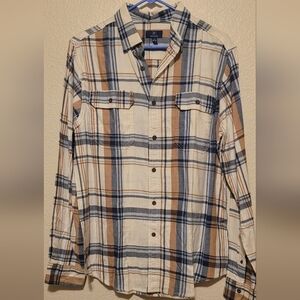 Classic plaid long sleeve shirt by George. Soft woven fabric with front button closure. Two chest pockets with button flaps. Neutral tones for versatile wear. Item is new, never worn, no signs of wear