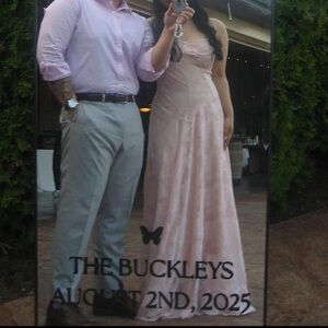 It’s unlined but I wore a nude slip and it was perfect. Only worn twice and altered 4”. I’m 5’4” and it still touched the ground with 3” heels. Last picture shows the actual dress.
