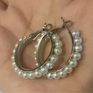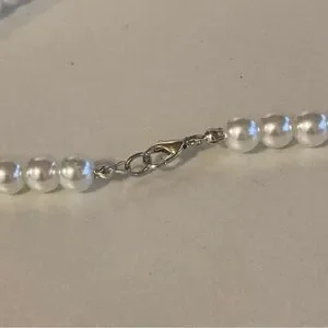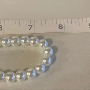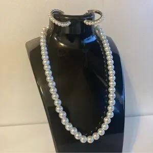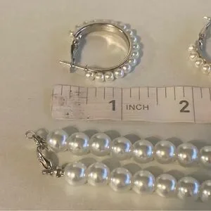 Elegant white faux pearl glass necklace paired with matching pearl-accent hoop earrings. Timeless design that complements both formal and casual looks. Lightweight and comfortable for all-day wear. Perfect as a gift or staple accessory.