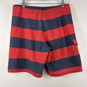 Rusty Board Shorts Men 32 Red Gray Striped Y2K 2000s Surfboard Swim Trunks