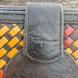 Ferragamo Gancini Leather Wallet Woven Inlay Vintage