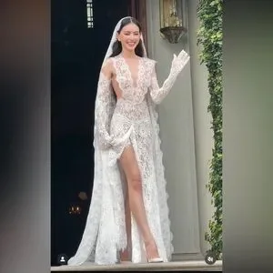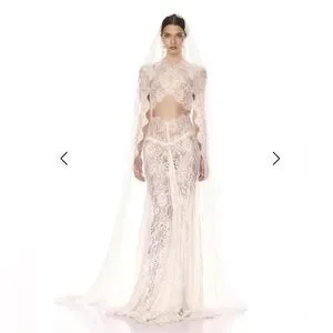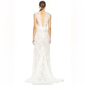 Bronx & Banco NAIA White Lace Bridal Sheer Gown L NWOT