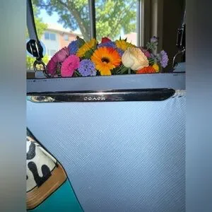3FER Coach Light Blue Saffiano Leather Crossbody with Floral Print Accent