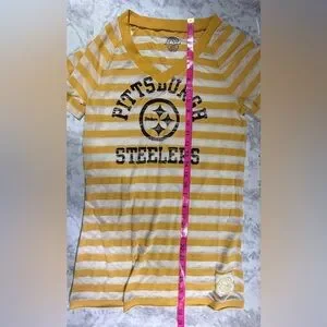 Pittsburgh Steelers Striped woman’s V-Neck T-Shirt sz M