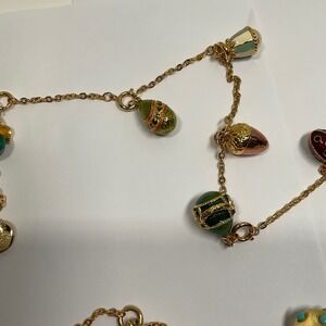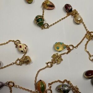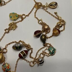 Joan Rivers 85 Inch Faberge Egg Charm Necklace Gold Tone Multi Color Enamel Long