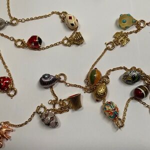 Keywords: Faberge Style, Egg Charms, Victorian Revival, Maximalist, Statement Jewelry, Long Wrap Necklace, Enamel Charms, Collector Piece, Whimsical, Multi-strand, Gold Tone, Joan Rivers Classics, Royal Core, Easter Jewelry, Gift for Her