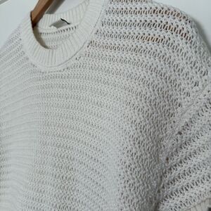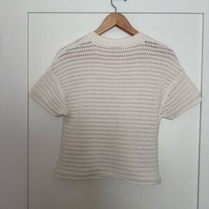 Abercrombie & Fitch Top Womens Sz M White Crochet Open Knit Short Sleeve Cotton