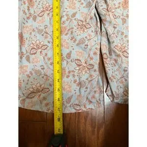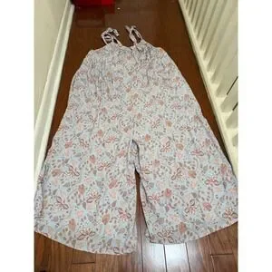 World Market Floral Wide Leg Jumpsuit Blue Pink Boho Tie Shoulder L/XL