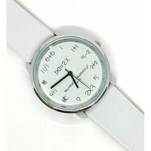 Vtg New Ladies Men Unisex Math Themed Watch Silver Face Fresh Battery Item #1111