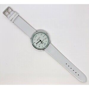 UNISEX - VINTAGE NEVER USED - MATH THEME STAINLESS STEEL WATCH WITH WHITE METAL FACE AND WHITE FAUX LEATHER BAND