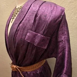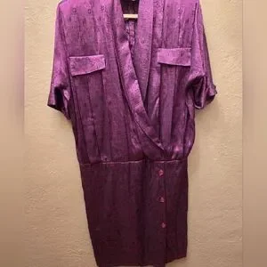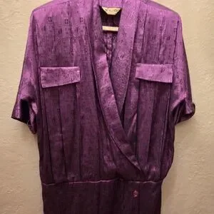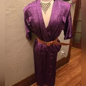 Vintage Dan Vali Silk Dress Purple Metallic Midi Belted Statement Canada
