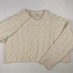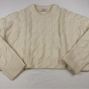 ARITZIA Babaton Cable Knit Glory Wool Cropped Sweater in Heather Birch 2XS EUC