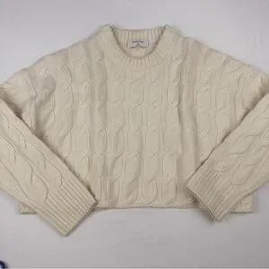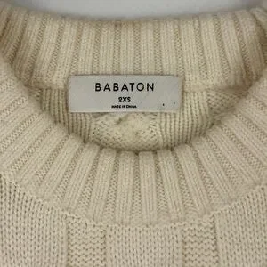 Chic Babaton wool cable knit sweater in a soft cream tone.