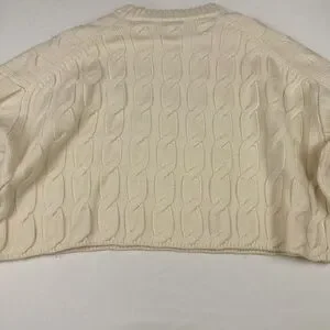Soft cable-knit sweater with a classic crew neck. Boxy, slightly cropped fit. Cozy and easy to layer.