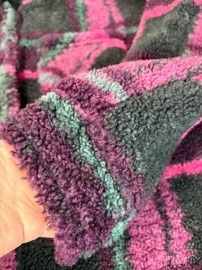 Super cozy plaid sherpa jacket from Thread & Supply in a bold pink, purple, charcoal, and teal colorway 💖