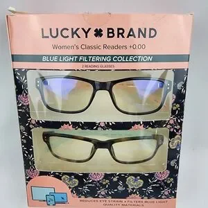 2 Pair Lucky Brand Blue Light Filtering Glasses +0.00 Tortoise Pink & Teal style
