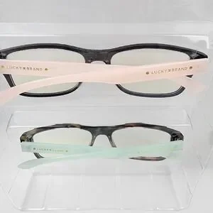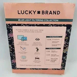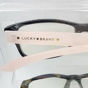 2 Pair Lucky Brand Blue Light Filtering Glasses +0.00Tort Pink & Teal. In like new condition. The original package does have some ware but the glasses themselves are in like new condition. Stylish Eye Protection.