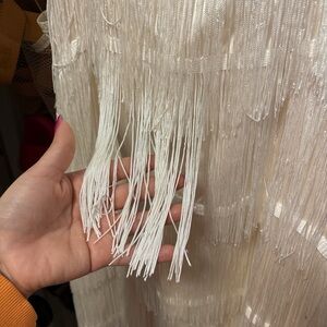 Elegant A-line skirt with cascading fringe layers. Adds movement and style.