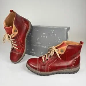 V-Italia Kiki Red Venezia Leather Boots - 40/US 9
