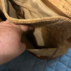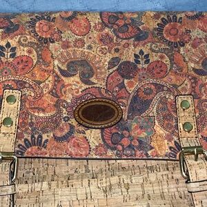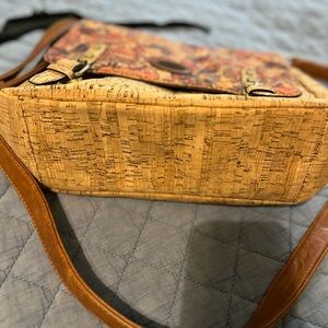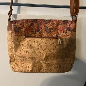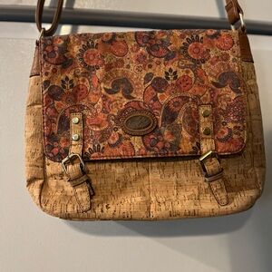 Tan and Brown Cork and Floral Crossbody Bag