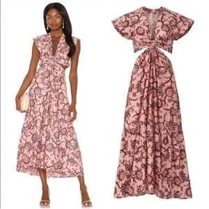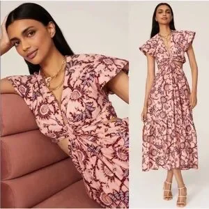 A.L.C. Alexandria Cotton Dress Salmon Red Floral Carlinal Print in Size 6