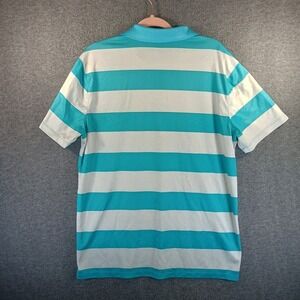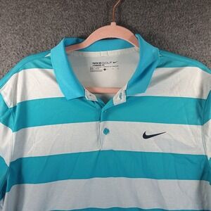 Nike Golf Polo Shirt Mens L Standard Fit Blue Striped Swoosh Logo Lighwieght
