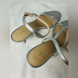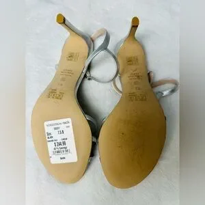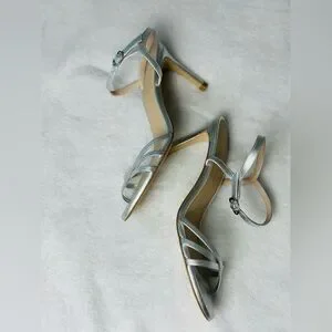 NWT. Never been used. Chic silver sandals with elegant straps. Perfect for any special occasions. Please see photos for details.
