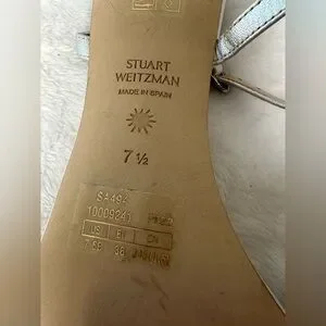 Stuart Weitzman Starla Ankle Strap Sandals in Silver Metallic Leather Size 7.5