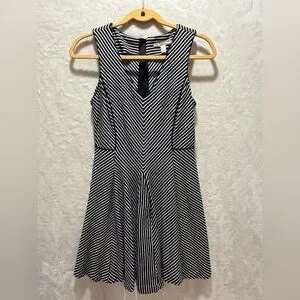 Banana Republic Chevron Stripe Dress Flattering Fit Flare Parisian Chic