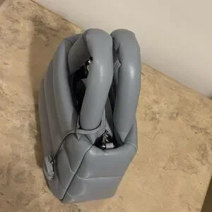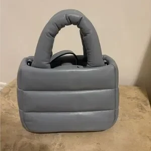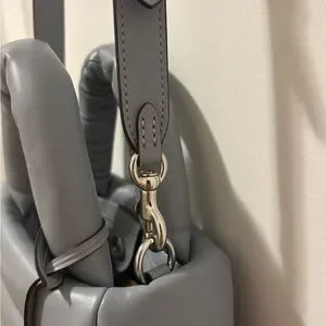 The New Coach Mini Pillow Tote in Grey Blue is a stylish and luxurious handbag from the renowned brand Coach.